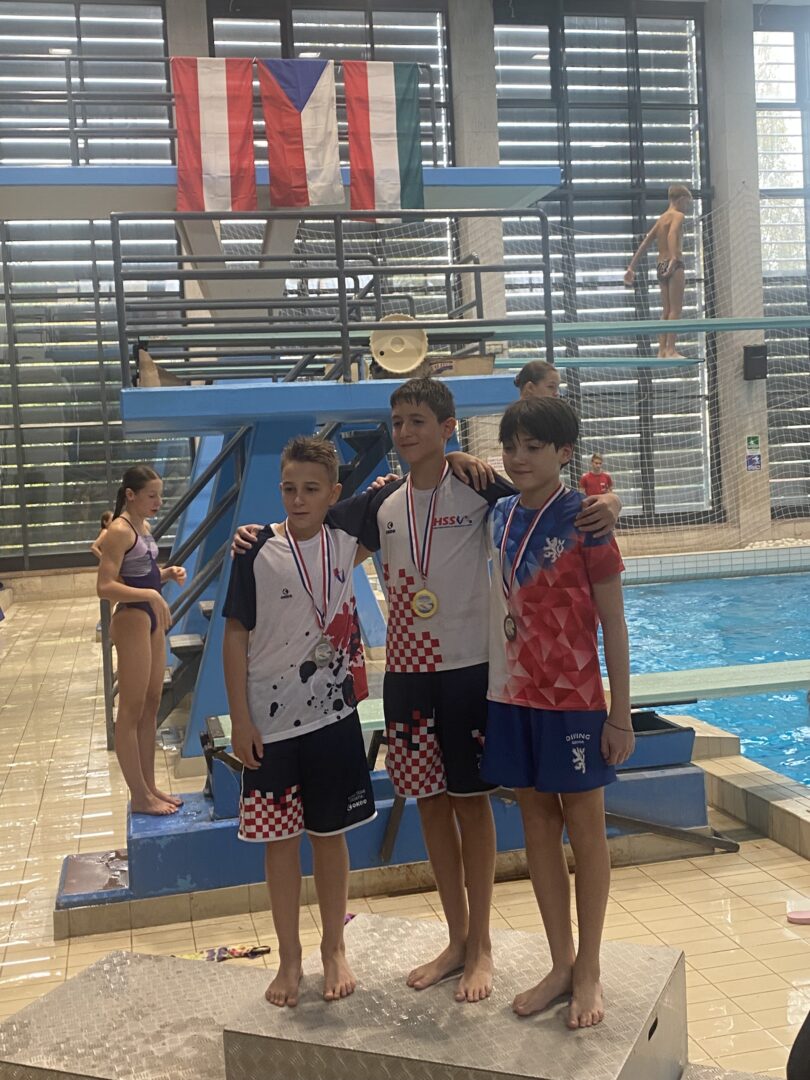 Na međunarodnom natjecanju u skokovima u vodu “4 nacije”, na kojem sudjeluju Hrvatska, Mađarska, Češka i Austrija, nastupila su po dva najbolja skakača iz svake zemlje. U današnjem finalu skokova s daske visine 3 metra, hrvatski predstavnik i naš učenik Gabriel Trošćan osvojio je zlatnu medalju, a zahvaljujući njegovom uspjehu na postolju je zasvirala himna Republike Hrvatske.
